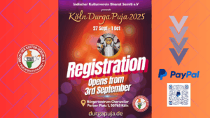 Bharat Samiti will officially open our registration on September 3 for guests wanting to attend our Durga Puja 2025 in Cologne-Chorweiler.